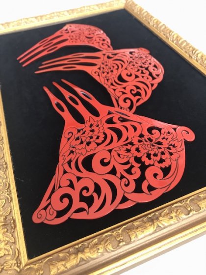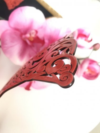 Bright big red sukashi kanzashi (openwork hairpin), light and unbreakable, peony, flowing water pattern, fan shaped, barrette-shaped, gingko-shaped, for wedding ceremonies, recitals, theater, dance, unbreakable kanzashi (hairpin) (Size: S to L) Designed by ALIANSA